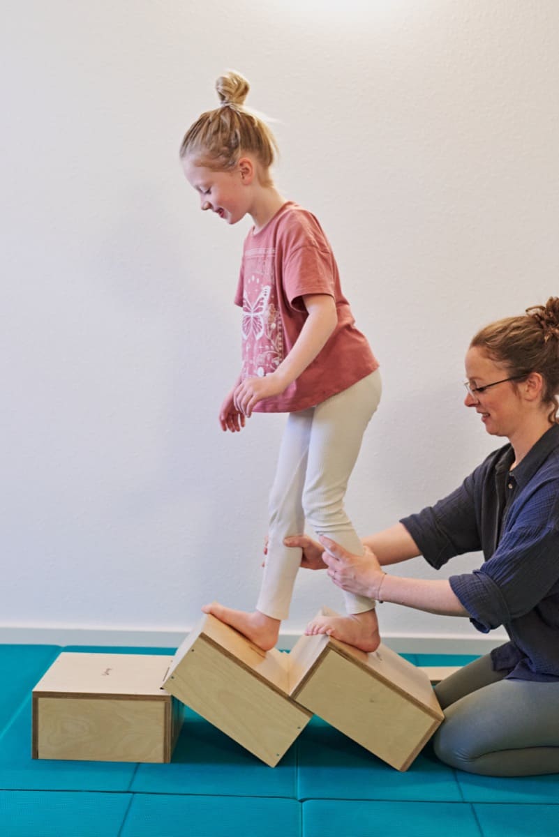 Dadurch verbessert sich zum Beispiel die Kopfkontrolle, Rumpfkontrolle und die Haltungskontrolle im Sitz und Stand.