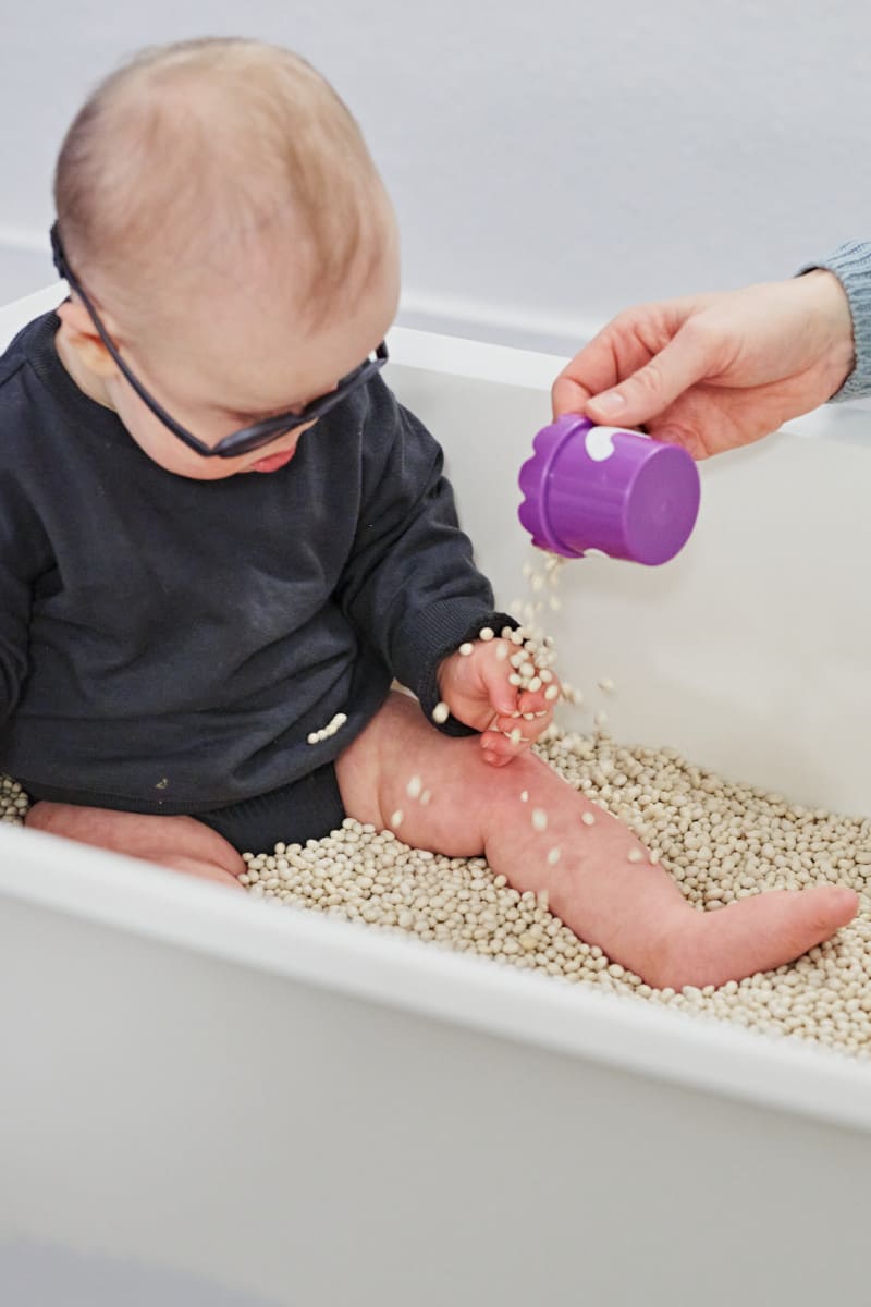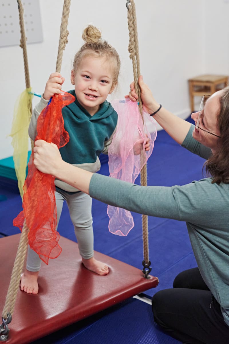 Daher fördern wir in der SI-Therapie die Sinne, die bei dem Kind zu stark oder zu schwach verarbeitet werden. Typische Materialien sind in der Therapie z.B. Tunnel, Schaukeln, Rasierschaum oder ein Bohnenbad. Wir zeigen den Eltern, wie sie auch zu Hause ihr Kind optimal fördern und unterstützen können.